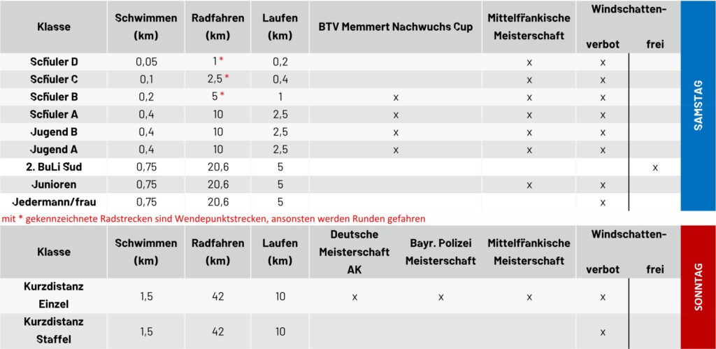 Der Veranstaltung liegen die Wettkampfordnungen der Deutschen Triathlon Union (Sportordnung, Veranstalterordnung, Ligaordnung, Anti-Doping-Code, Kampfrichterordnung), sowie Rechts- und Verfahrensordnung und die Disziplinarordnung zugrunde. Mit der Anmeldung erkennt der Teilnehmer die Wettkampfordnungen, sowie Rechts- und Verfahrensordnung, die Disziplinarordnung und die Bedingungen des Veranstalters gemäß der Ausschreibung für sich als verbindlich an.